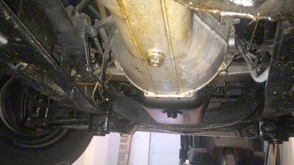 In particolare è evidente una perdita dal tappo coppa olio e dal tappo olio cambio. L'olio colando nel tempo ha inzaccherato un po tutto, anche il supporto cambio e il telaio circostante.